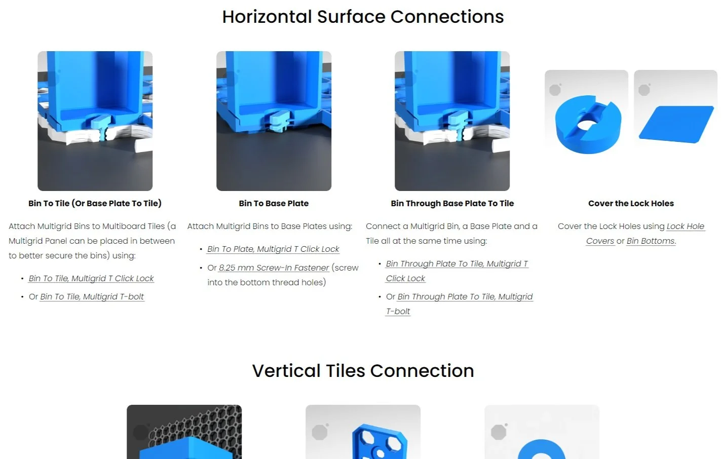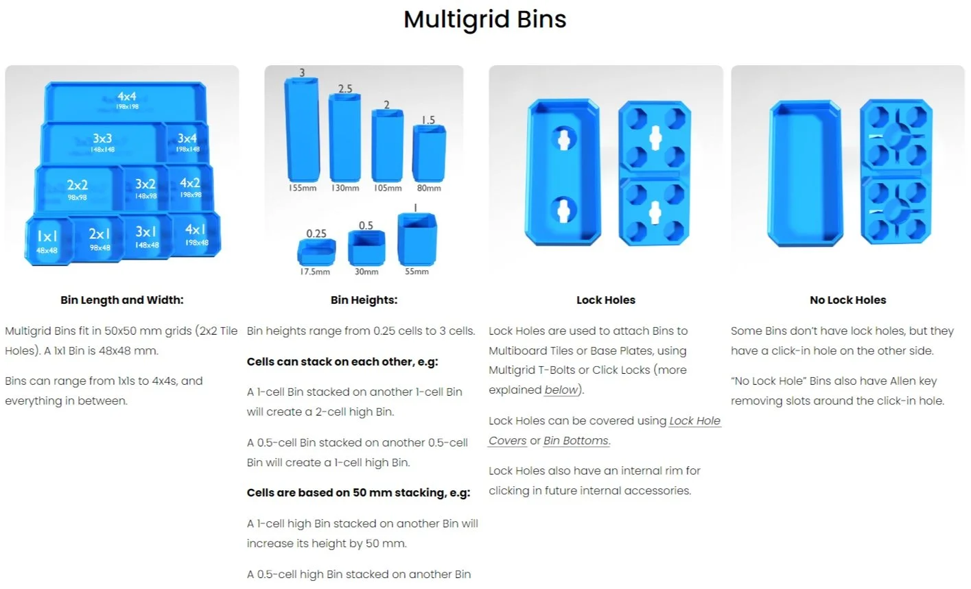 New Bin heights: Bin heights are now based on 50 mm stacking, which makes them more compatible with the Multiboard tiles.